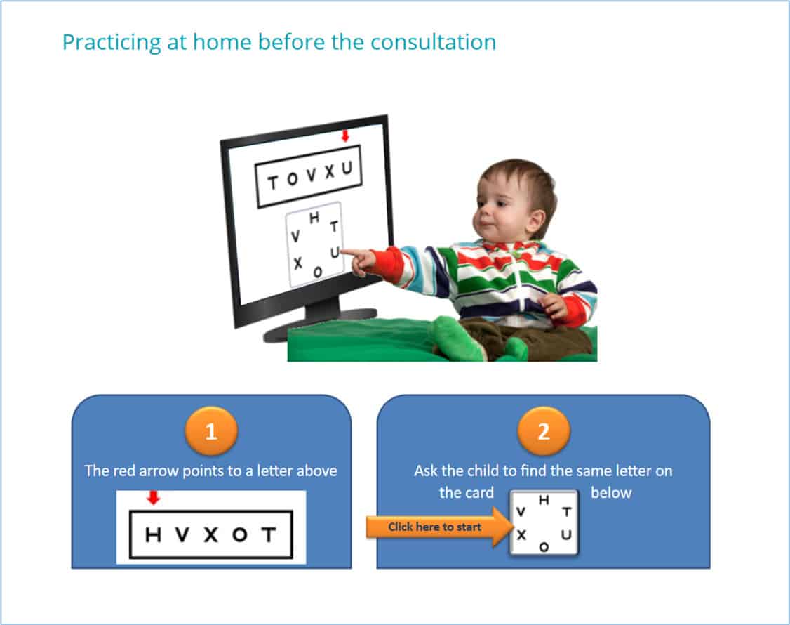 Training in letter matching is required before VA testing; this can be carried out by the practitioner or by the parents. It can be very useful for the child to practice at home with their parents before the visual examination. For that, a printed “Matching Kit” is given to the parents.
