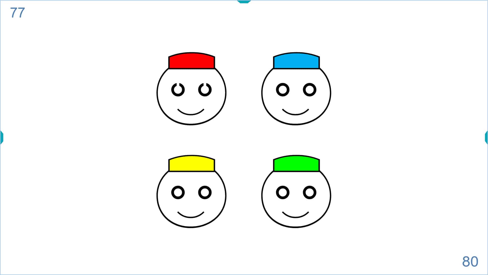 Prior to VA testing, training in matching is also recommended for younger children and for those unable or unwilling to name the responses. The matching key card consists of a sheet with printed smiling faces with red, blue, yellow, or green caps.