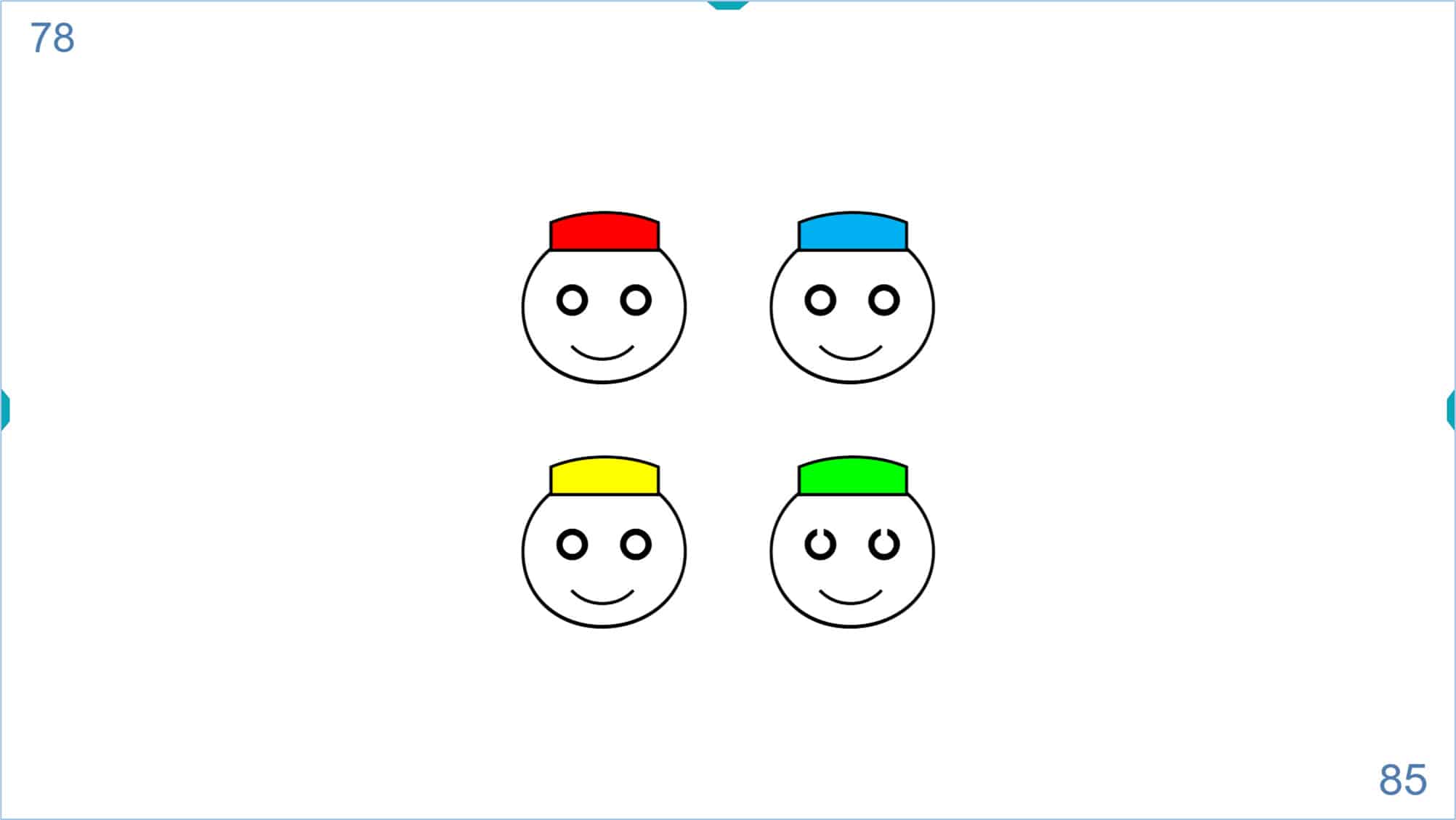 The child is asked to identify on a “matching keycard” by pointing to the smiling face with the same colour cap and position that shows the Landolt Cs (broken glasses) on the computer screen, without having to name them.