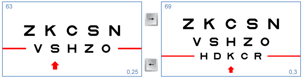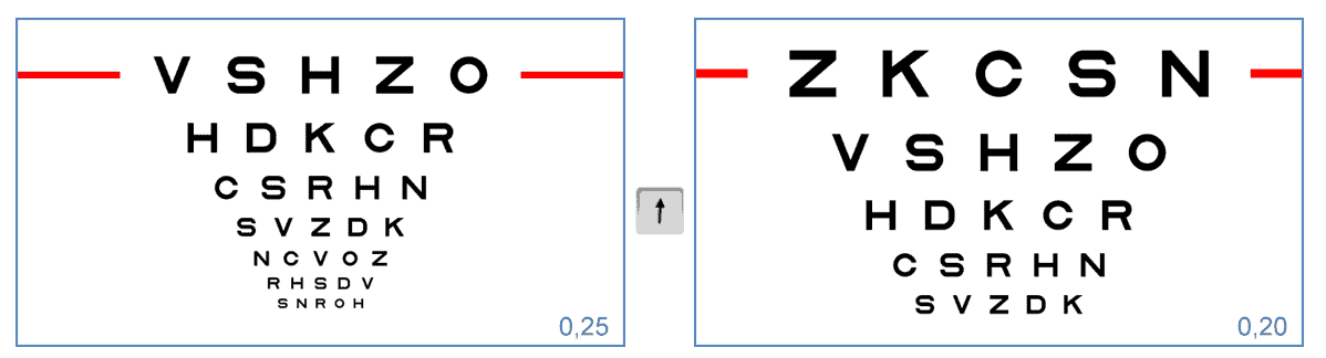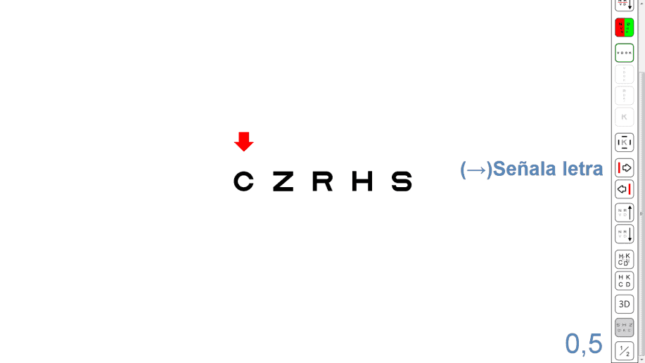 La flecha roja podemos utilizarla con una fila aislada de letras, y también durante el cálculo automático de la AV (ver Protocolo de Medida de la AV):