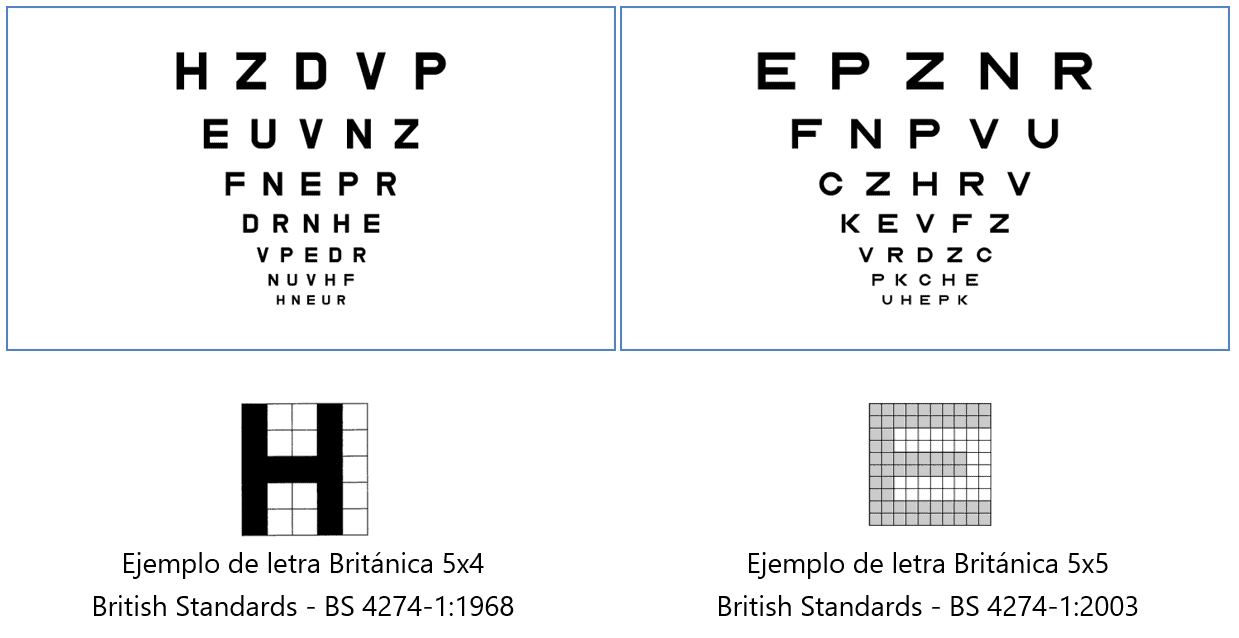 Todos los optotipos de AV han sido construidos aplicando el diseño logMAR propuesto por los autores Bailey y Lovie, (1) que hoy en día se acepta universalmente como el modelo estándar para la medida de la Agudeza Visual.