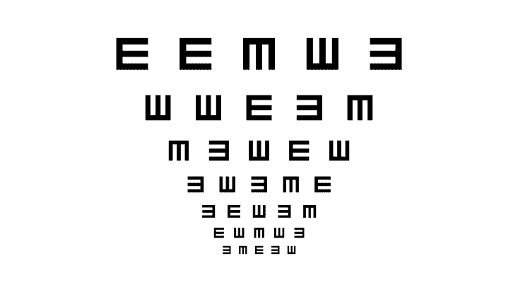 Este optotipo utiliza la “E” de Snellen con una proporción cuadrada de 5×5. La E puede estar orientada en una de las 4 posiciones (izquierda, derecha, arriba y abajo).