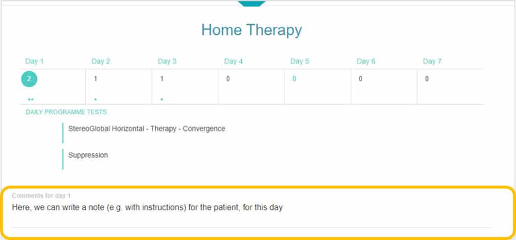 Just below, the program offers a text box, where we can write any comment or instruction for the patient, for that specific day.