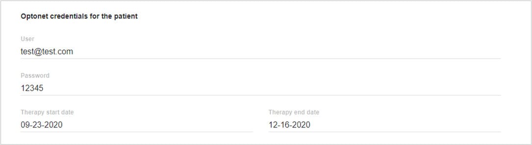 Once the exercises have been assigned, we can generate a username and password for the patient to access the program of home therapy. These keys must be unique, so we recommend introducing the patient’s email as their username, as shown in this example: