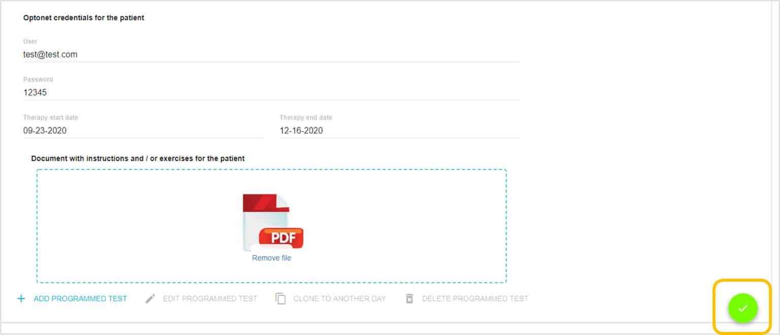Finally, the program allows attaching documents for the patient, for example, with instructions for the different vision therapy exercises.
