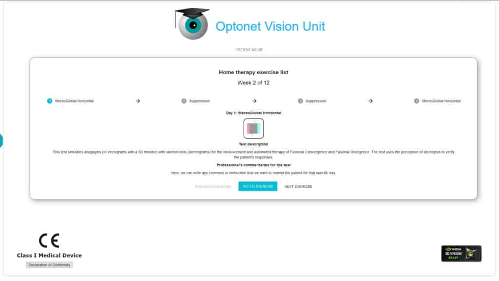 The Optonet Vision Unit includes a Home Vision Therapy service that allows the professional prescribing individualized training programs for each patient, to be performed at home.
