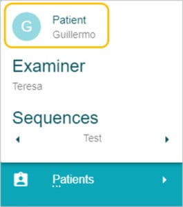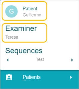 Once both the Patient and Examiner have been selected, we can see both names appearing at the top of the main menu: