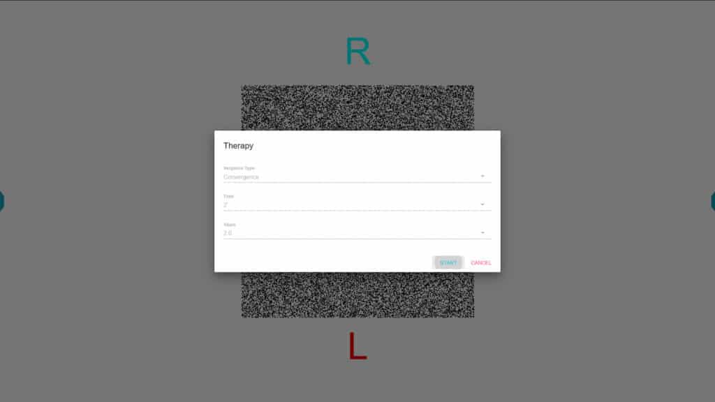 Upon pressing the Perform Exercise button, the patient will need to put on their therapy glasses and press start, as shown in this example: